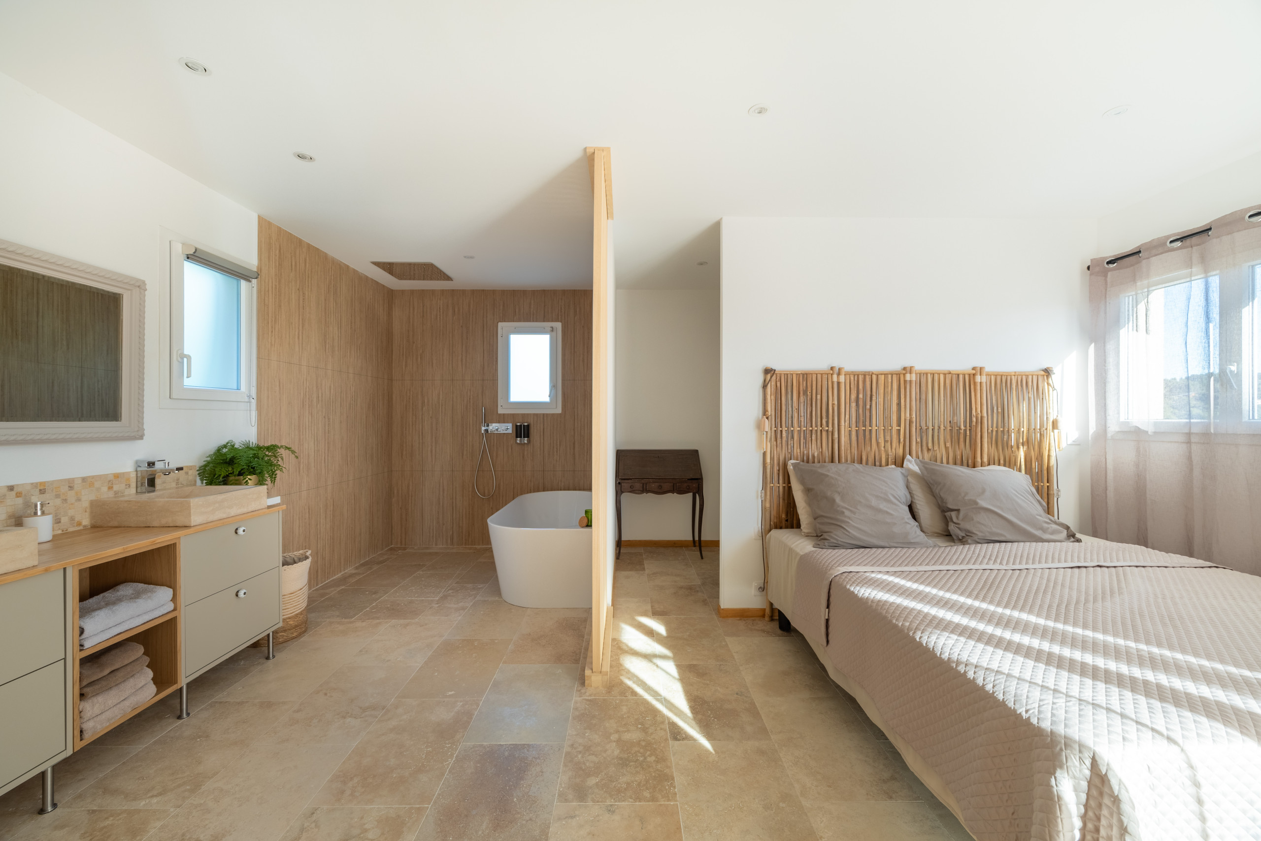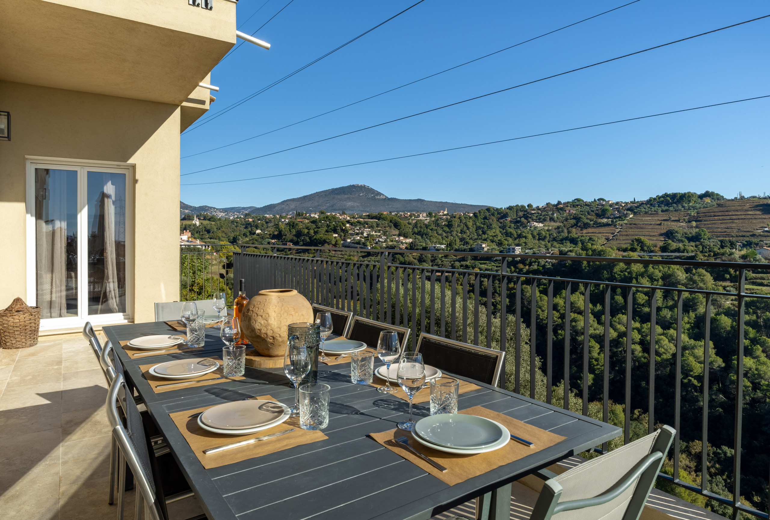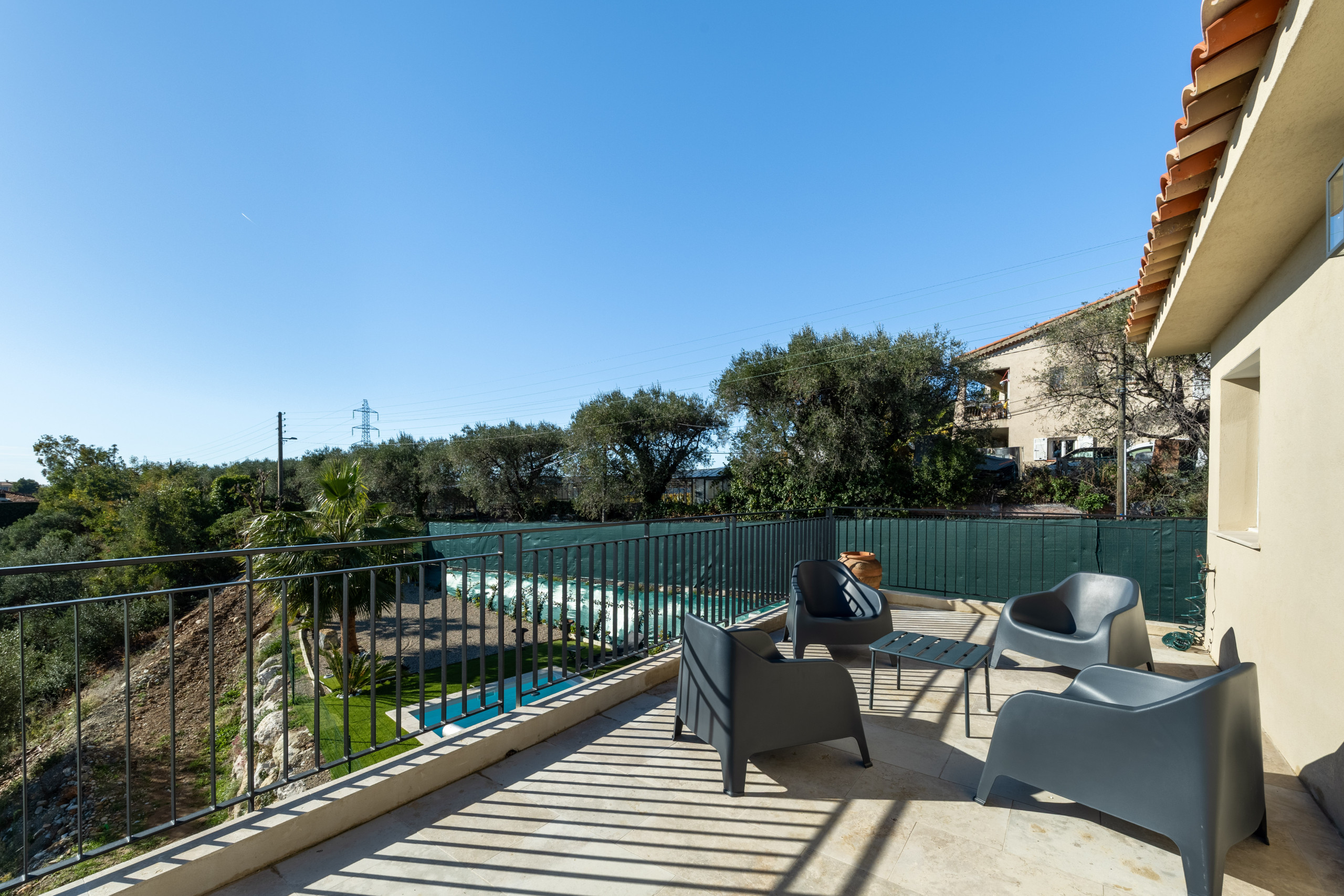 Villa Domaine des Sources is a brand new villa located in the heart of Bellet Vineyards in Nice. You will be delighted by the the peaceful environment in countryside of Nice where you can enjoy local wine tasting, vin de Bellet. You will be staying in a private villa with pool and beautiful gardeb located at only 20 minutes away from Nice city center and the beach. The villa offers an entrance, a large living room with a full equipped open kitchen. On ground floor you will have a first king size bed bedroom with its ensuite bathroom with bath and shower. On the first and last floor you will find 2 other king size bed bedrooms and a last queen size bed bedroom and a seperate shower and 2 toilets. In total the villa offers 4 bedrooms and can accomodate up to 8 people. You will love having your dinner from the terrace or in the beautiful garden whith its barbecue. The villa offers central air conditioning in every room, parking slots and boules Court. Perfect for a holiday rental in Nice.