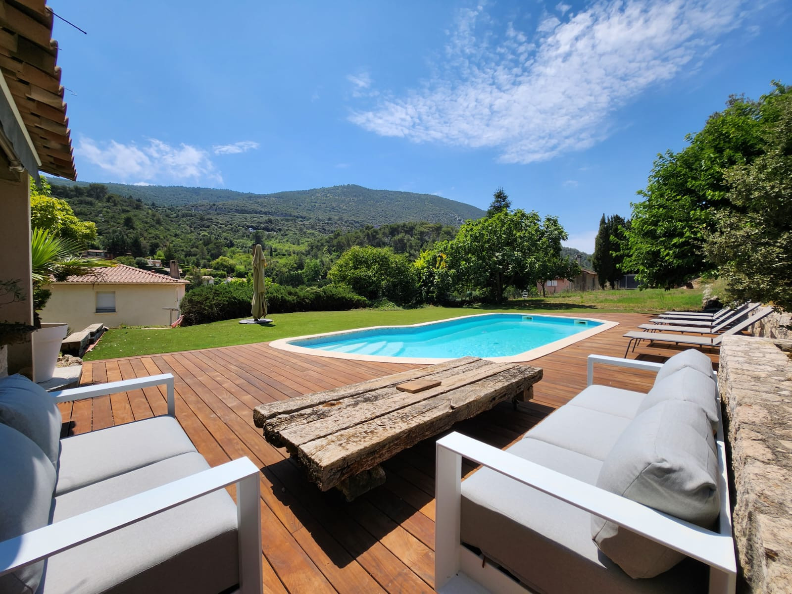 Villa Laghet est une magnifique villa située au calme absolu entre Nice et Monaco à seulement 20 minutes des plages de Cap d'Ail ou de Nice. Cette villa de 145m2 entièrement climatisée sera parfaite pour vos vacances en famille cet Eté. Elle offre un très beau séjour avec cuisine américaine entièrement équipée, une suite parentale avec lit king size et salle de douche. A l'étage, vous trouverez une seconde chambre double avec lit king size et salle de douche, une troisième chambre avec deux lits simples rapprochables, une dernière chambre avec deux lits simples et une troisième salle de bains. Vous profiterez du vaste jardin de 2500m2 et de l'espace piscine privatif avec pool house. Idéal pour un séjour en location saisonnière sur la Côte d'Azur.