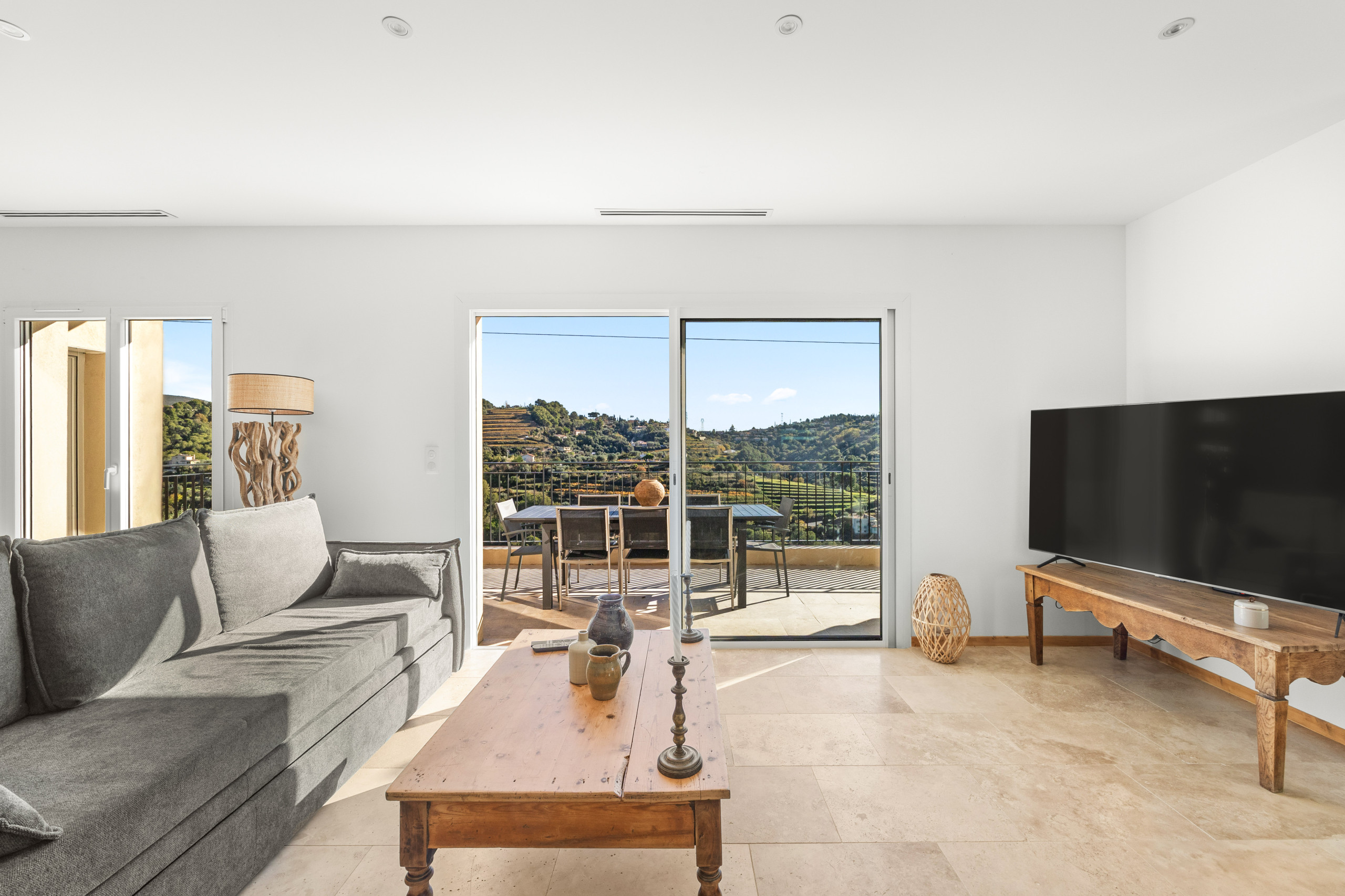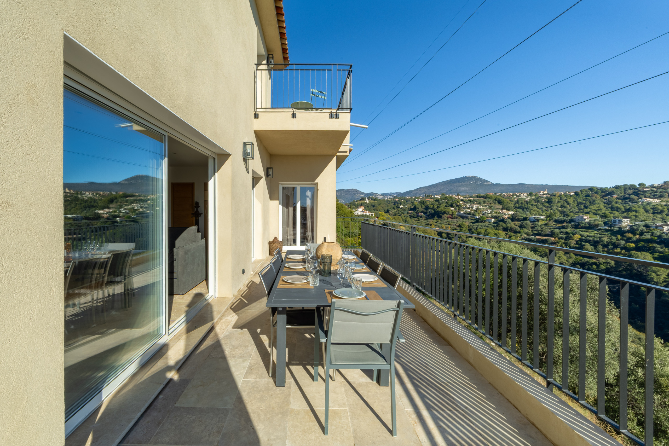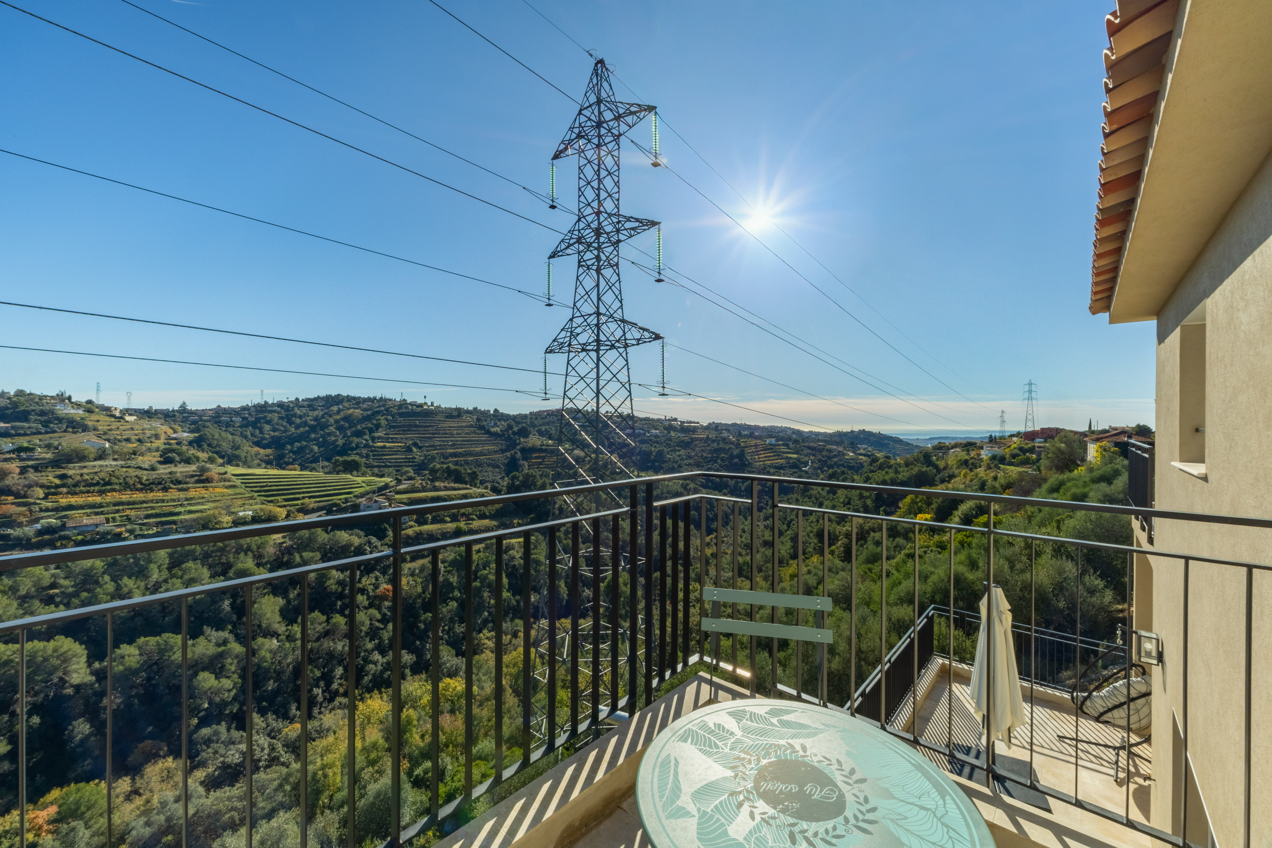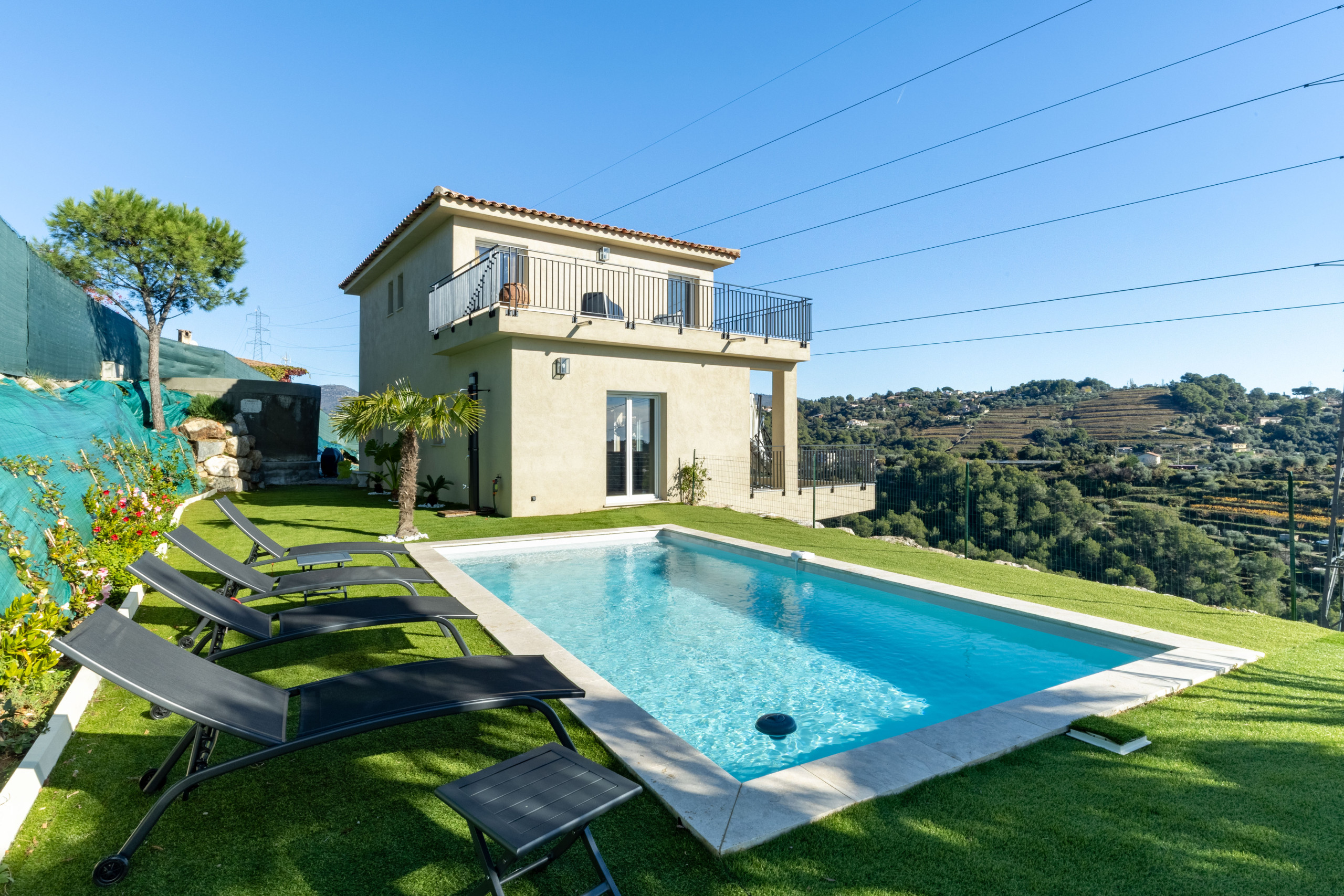 La Villa Domaine des Sources est une magnifique villa indépendante et neuve située au cœur des vignes de Bellet à seulement 20 minutes des plages de Nice et du centre ville de Nice. La villa offre une très belle piscine ains qu'un jardin de 500m2 avec terrain de pétanque. A l'intérieur vous trouverez une entrée, un vaste séjour salle à manger, une cuisine américaine entièrement équipée. Au rez de chaussée vous trouverez une chambre parentale avec lit extra large et sa salle de bains en suite avec douche et baignoire. A l'étage la villa offre 3 autres chambres doubles ainsi qu'une seconde salle de douche. La villa offre la climatisation dans toutes les pièces et 2 toilettes. Vous adorerez prendre vos diners depuis la vaste terrasse côté salon ou bien depuis le jardin avec son barbecue. Cette villa sera idéale pour un séjour en famille ou entre amis au calme et à moins de 20minutes du centre ville de Nice
